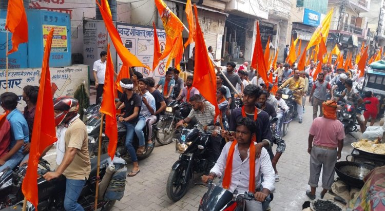 हिंदू संगठनों के तत्वावधान में रविवार को अखंड भारत संकल्प यात्रा के तहत भगवा मोटरसाइकिल रैली का भव्य आयोजन किया गया। यात्रा के दौरान कस्बे की सभी मुख्य सड़कें भगवा रंग में रंगी नजर आईं और जयकारों से पूरा कस्बा गूंजायमान हो उठा। जगह-जगह श्रद्धालुओं ने यात्रा पर पुष्प वर्षा कर भव्य स्वागत किया।