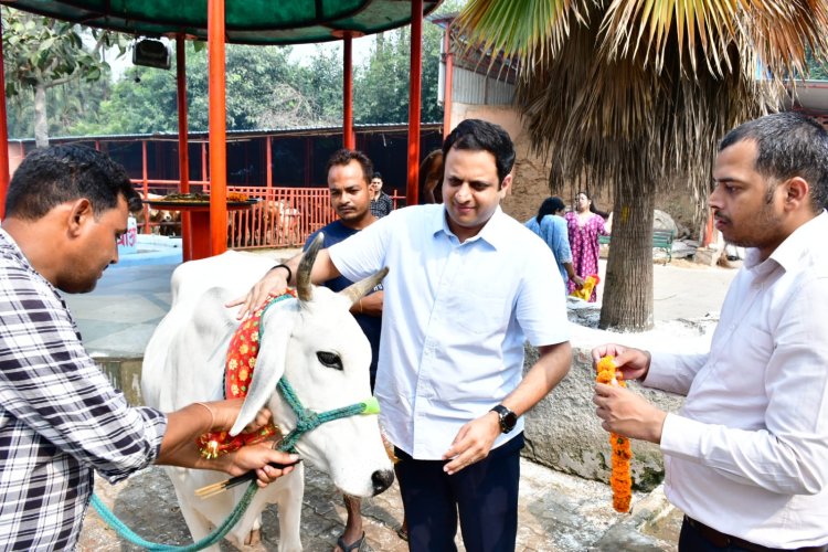 गोवर्धन पर नगर आयुक्त ने किया गौ पूजन, गोवंशों को खिलाया गुड और हरा चारा