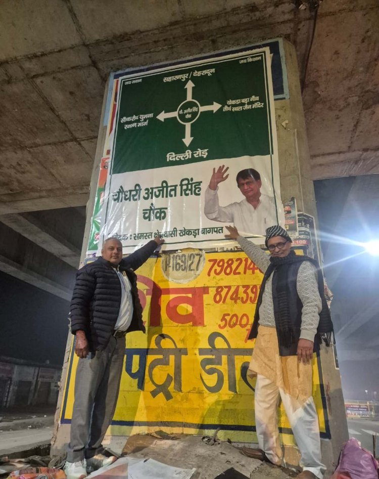 खेकड़ा कस्बे के दिल्ली–सहारनपुर राजमार्ग स्थित पाठशाला चौराहे को सोमवार को राष्ट्रीय लोकदल (रालोद) कार्यकर्ताओं ने ‘चौधरी अजित सिंह चौक’ के नाम से पुकारे जाने की घोषणा की। इस अवसर पर कार्यकर्ताओं ने चौराहे पर बैनर लगाकर नामकरण का सार्वजनिक रूप से ऐलान किया।