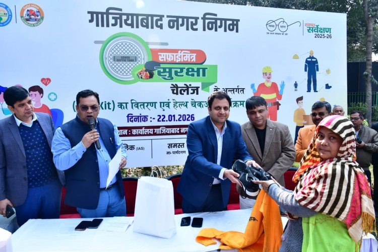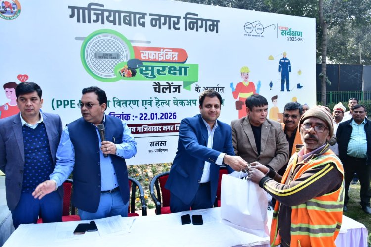 गाजियाबाद। नगर आयुक्त विक्रमादित्य सिंह मलिक के नेतृत्व में गाजियाबाद नगर निगम द्वारा नगर निगम मुख्यालय, नवयुग मार्केट में सफाई मित्र सुरक्षा चैलेंज कार्यक्रम आयोजित किया गया। कार्यक्रम का उद्देश्य सफाई मित्रों को शहर की स्वच्छता के साथ-साथ अपनी सुरक्षा एवं स्वास्थ्य के प्रति जागरूक करना रहा
